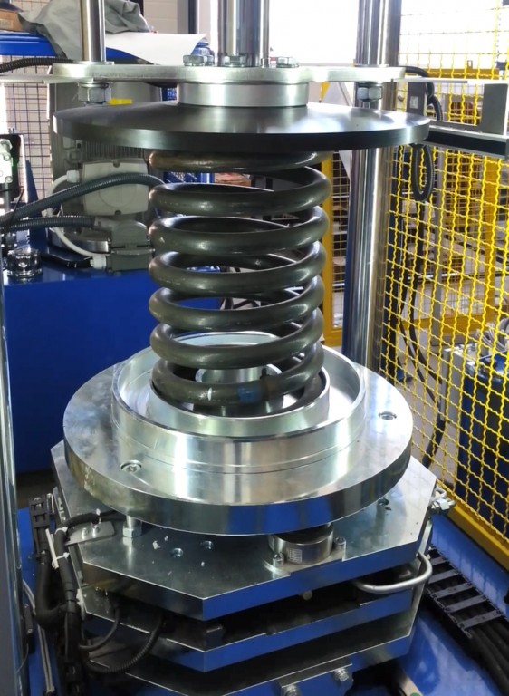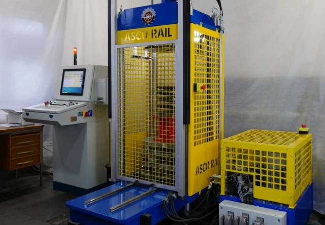Der Prüfstand dient zur statischen Prüfung der Eigenschaften von Schraubenfedern, die bei der Aufhängung von Schienenfahrzeugen verwendet werden. Es ist möglich, die Abhängigkeit der Größe des Federwegs von einer gegebenen Kraft zu prüfen. Nach der Prüfung können die Federn in Gruppen aufgeteilt werden. Der Prüfstand verfügt über einen ausziehbaren Tisch zum einfachen Be- und Entladen schwerer zu prüfender Elemente. Die Abmessungen des Prüfstands und die maximal erhaltene Kraft hängen von den Parametern der getesteten Federn ab (maximaler Außendurchmesser, maximale Höhe im freien Zustand, maximal zulässige Belastung). In Abhängigkeit von diesen Parametern wird das Design des Prüfstands ausgewählt - genau nach den Anforderungen des Kunden.