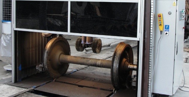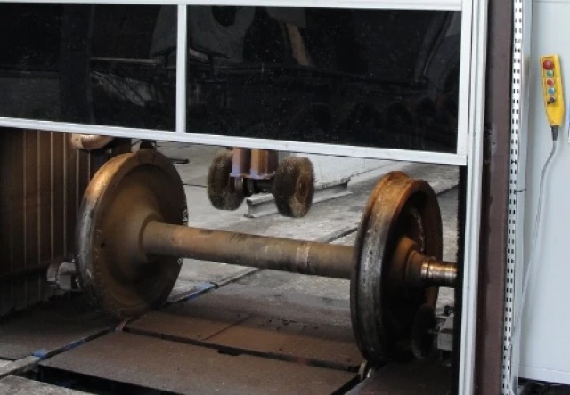 Die Reinigungsanlage dient zur Reinigung der Radsätze von Güterwaggons. In der Standardausführung reinigt die Anlage die ganze Achse (von innen). Zusätzliche Optionen: Reinigung des Notschenkels (von außen), Reinigung der Scheiben (von beiden Seiten) und spezielle Absauganlage.