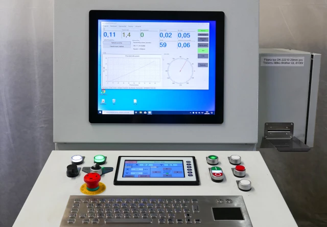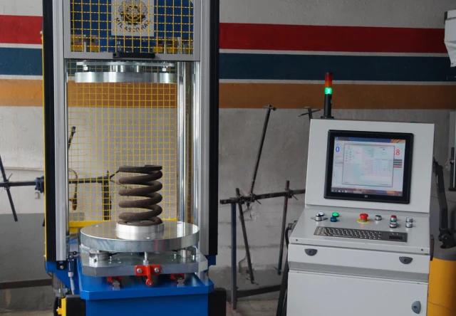 The stand is designed for testing spring characteristics. The computer system of the stand enables visualization and registration of the measured data.