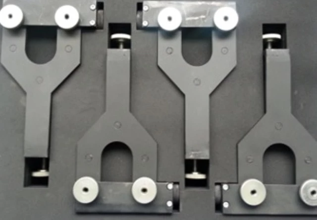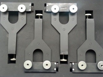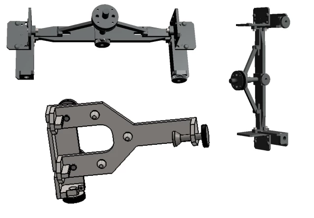 Przyrządy służą do ustalania środka wykroju maźniczego wózka typu 1XT lub 25 TN. Wymagane są do przeprowadzenia pomiarów krzyżowych na stanowisku do pomiaru ram wózków wagonowych.