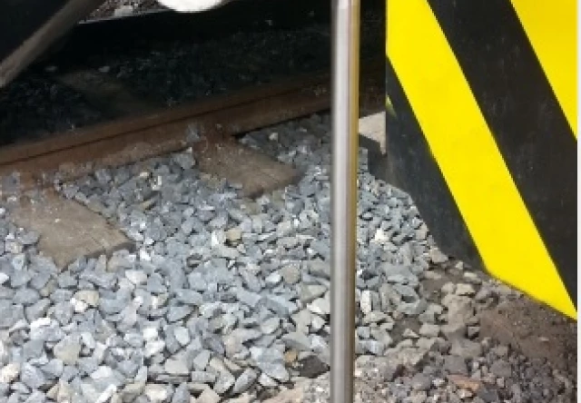Przyrząd przeznaczony jest do pomiaru odległości osi poziomej zderzaka od górnej powierzchni główki szyny. zakres pomiarowy: 920 - 1080 mm, dokładność pomiaru: 1 mm, bazowanie przyrządu: na górnej powierzchni główki szyny.