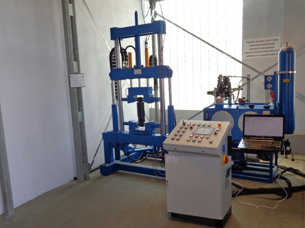 Stanowisko umożliwia badanie amortyzatorów hydraulicznych różnego typu stosowanych w pojazdach szynowych. Uzyskiwana jest charakterystyka przedstawiająca zależność między siłą tłumienia a skokiem amortyzatora.