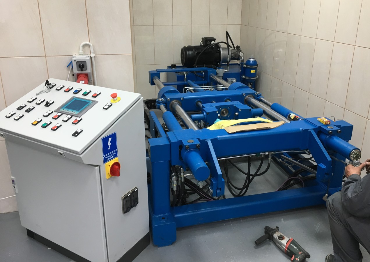 Stanowisko jest wykonane w wersji zautomatyzowanej i skomputeryzowanej z napędem hydraulicznym eliminującym wady maszyn mimośrodowych pozwalającej na: